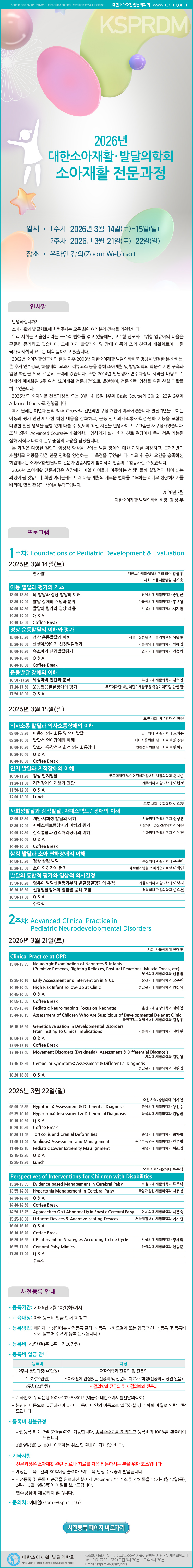 2026년 대한소아재활·발달의학회 소아재활 전문과정 안내